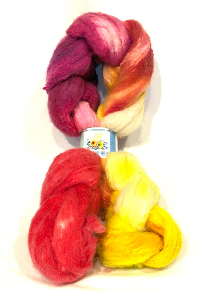 Merino with Silk slubs is actually very soft and fun to spin. I haven’t felted with it but I don’t see why you couldn’t. This fiber spun up creates a really fun texture to you yarn. 4 oz braids