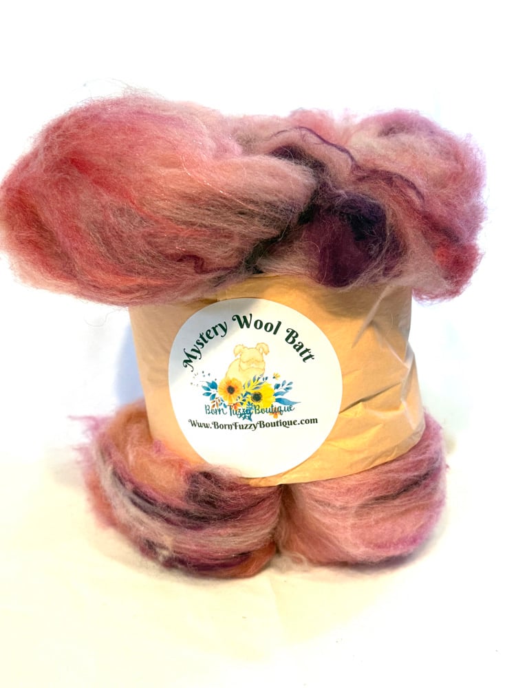 This mystery wool batt is a mix of several mysterious fibers. All I can say is that this batt is soft and fluffy! 3.98 oz art batt